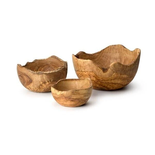 Die hochwertig verarbeiteten Schüsseln aus Olivenholz von Continenta sind aus einem Stück gefertigt. An dieser natürlichen Form ist besonders der Borkenrand charmant, der vereinzelt ganz gewollt erhalten bleibt.